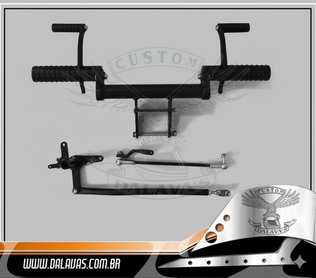 Conjunto fabricado em aço carbono, alumínio e outros materiais que complementam o kit.
