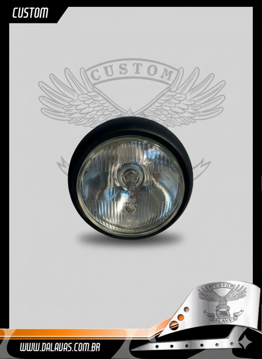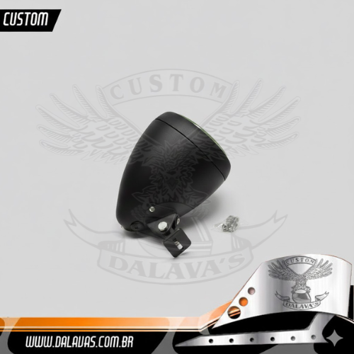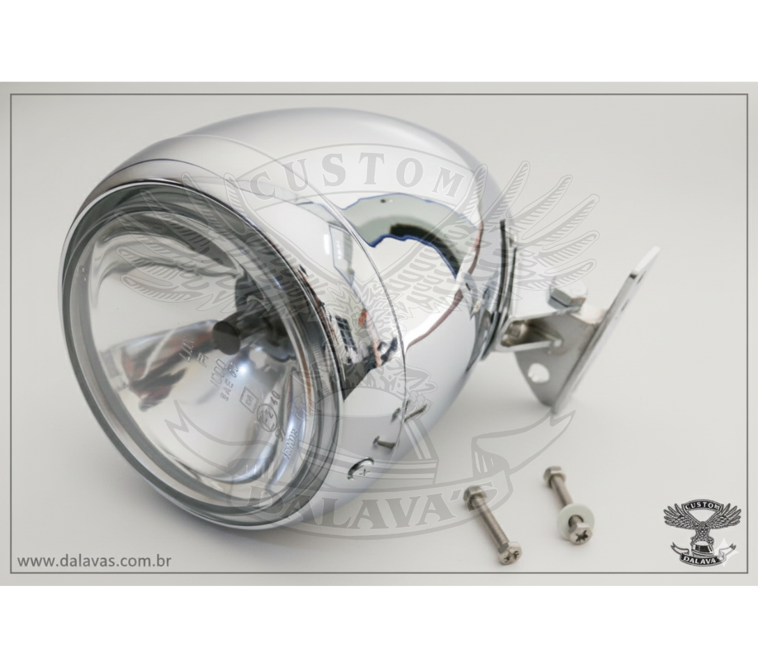 Farol Bullet, Base Retangular: 40x90mm c/ oblongos 8×30/8x60mm. Dica: 1)Ao fazer regulagens na altura e alinhamento do feixe de luz, solte os parafusos para não forçar a solda ponto e a carcaça.